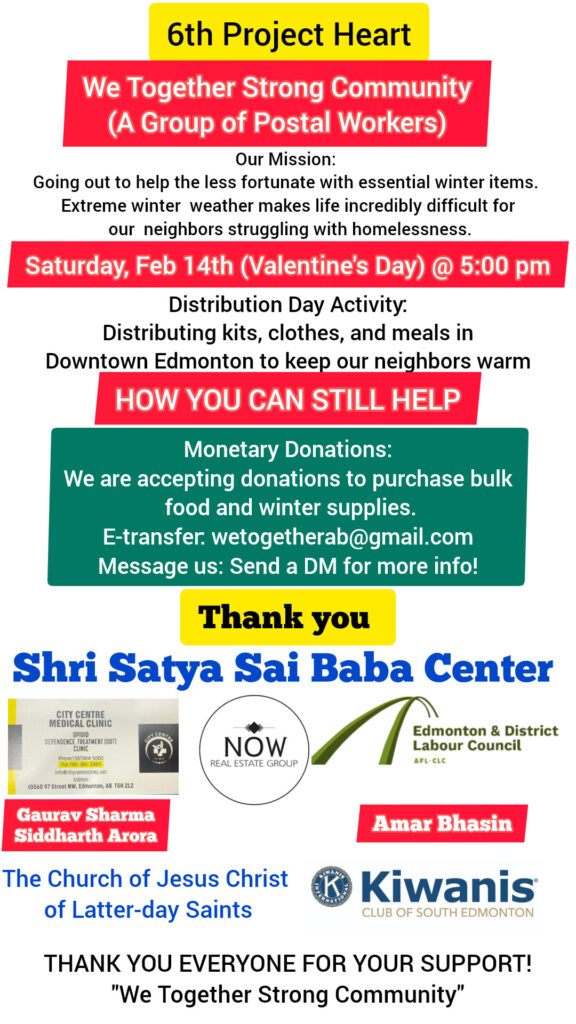We Together Strong Community is a group of postal workers that came together in April 2020 to provide members of the community with food hampers, hot meals, and warm clothes. For more information and to stay up-to-date with We Together Strong Community, click HERE.